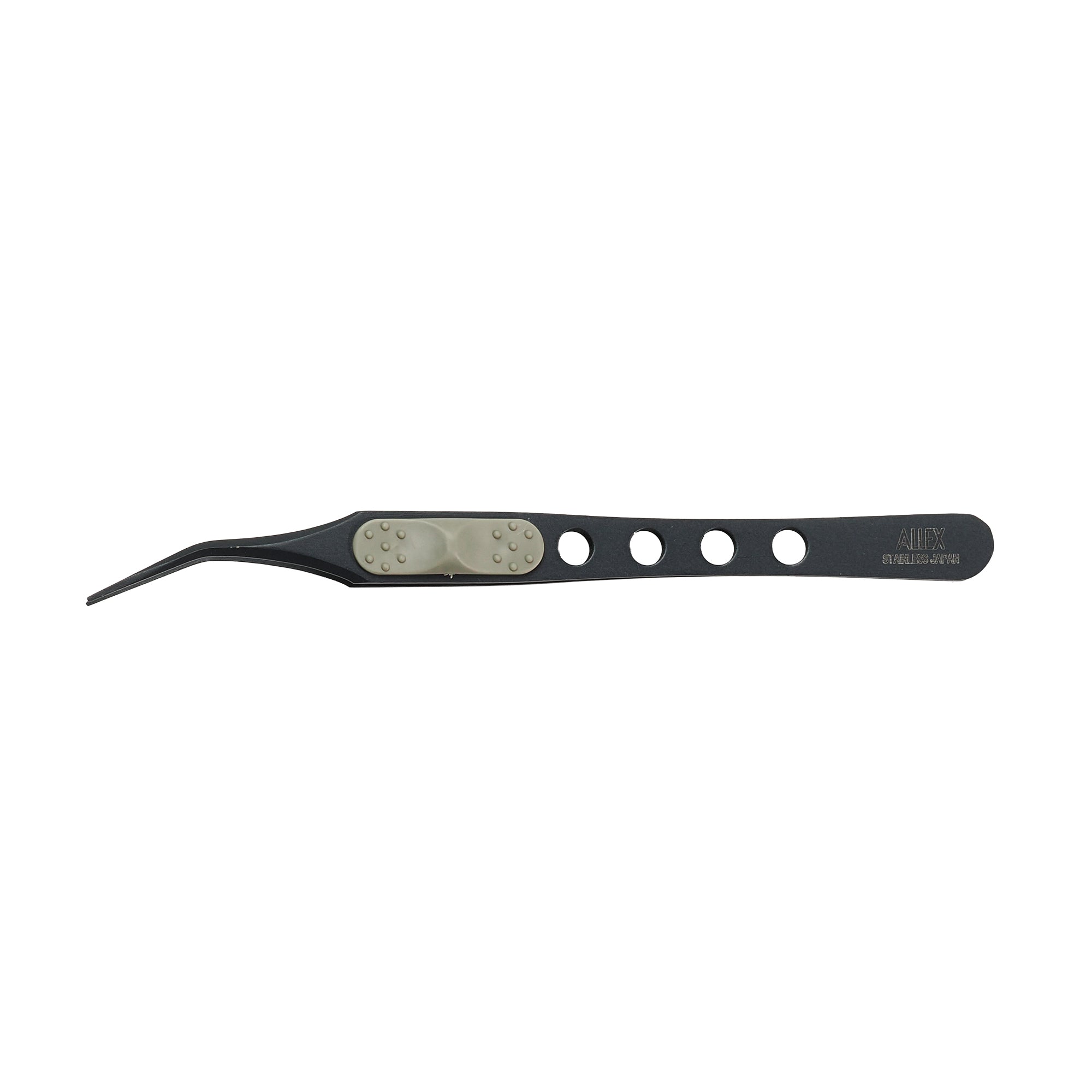 This model features angled tweezers, made from rust-resistant stainless steel with a fluorine coating. The tapered tip makes it perfect for fine, detailed tasks, especially when handling sticky or adhesive materials.