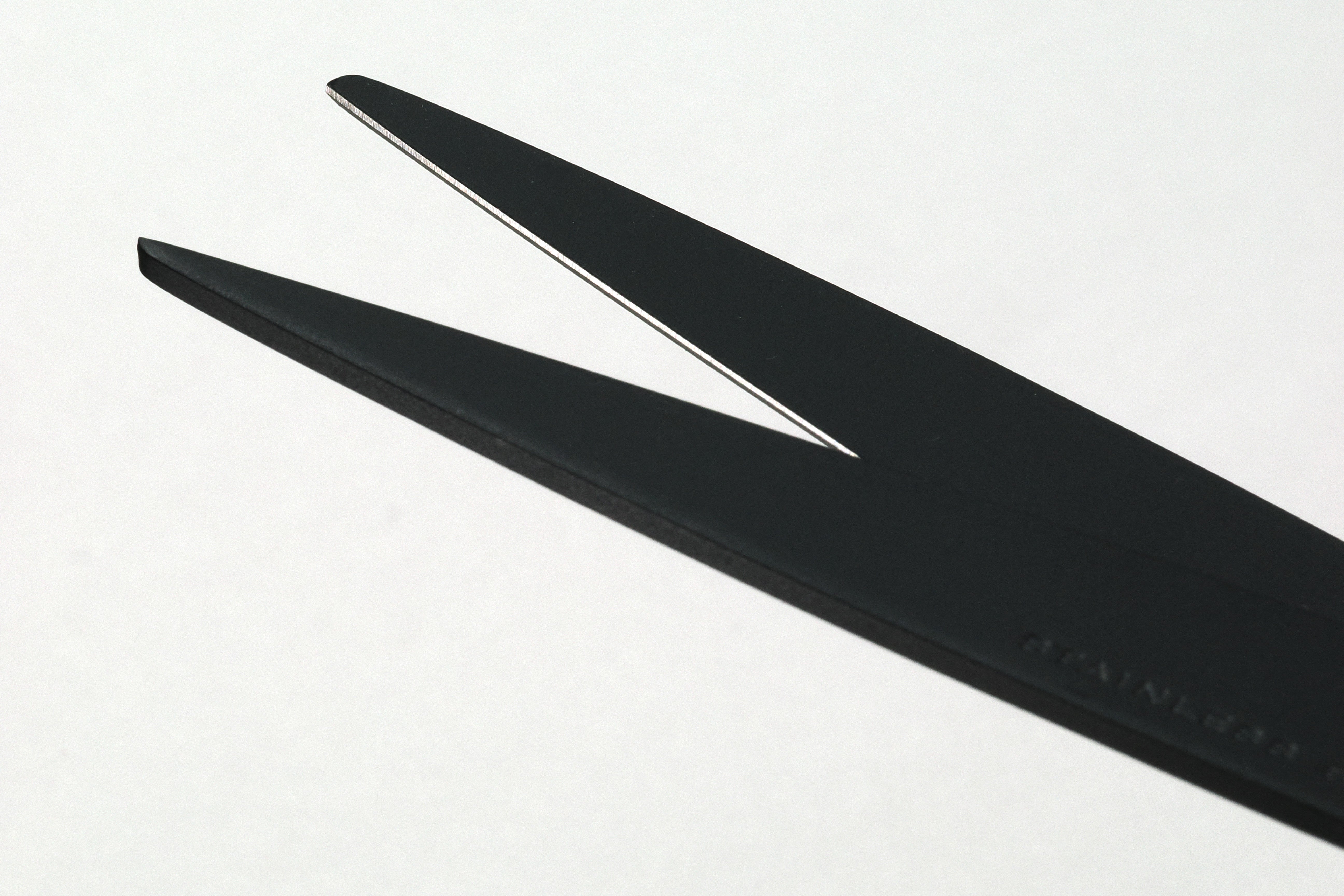 This model is made from rust-resistant stainless steel. The blades are fluorine-coated, preventing adhesive from sticking and making tape easy to peel. A resin nut allows smooth and lightweight opening and closing for effortless use.