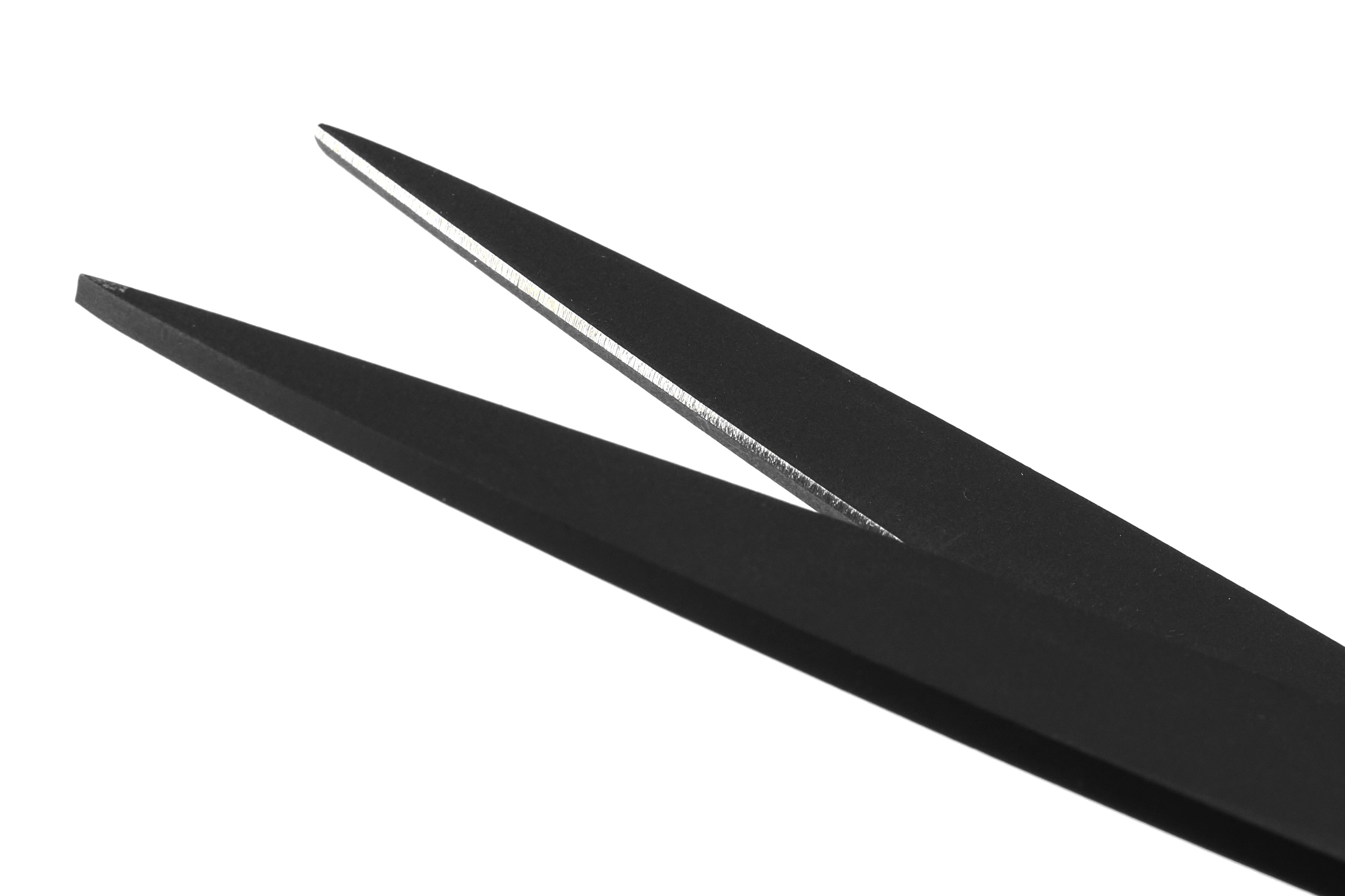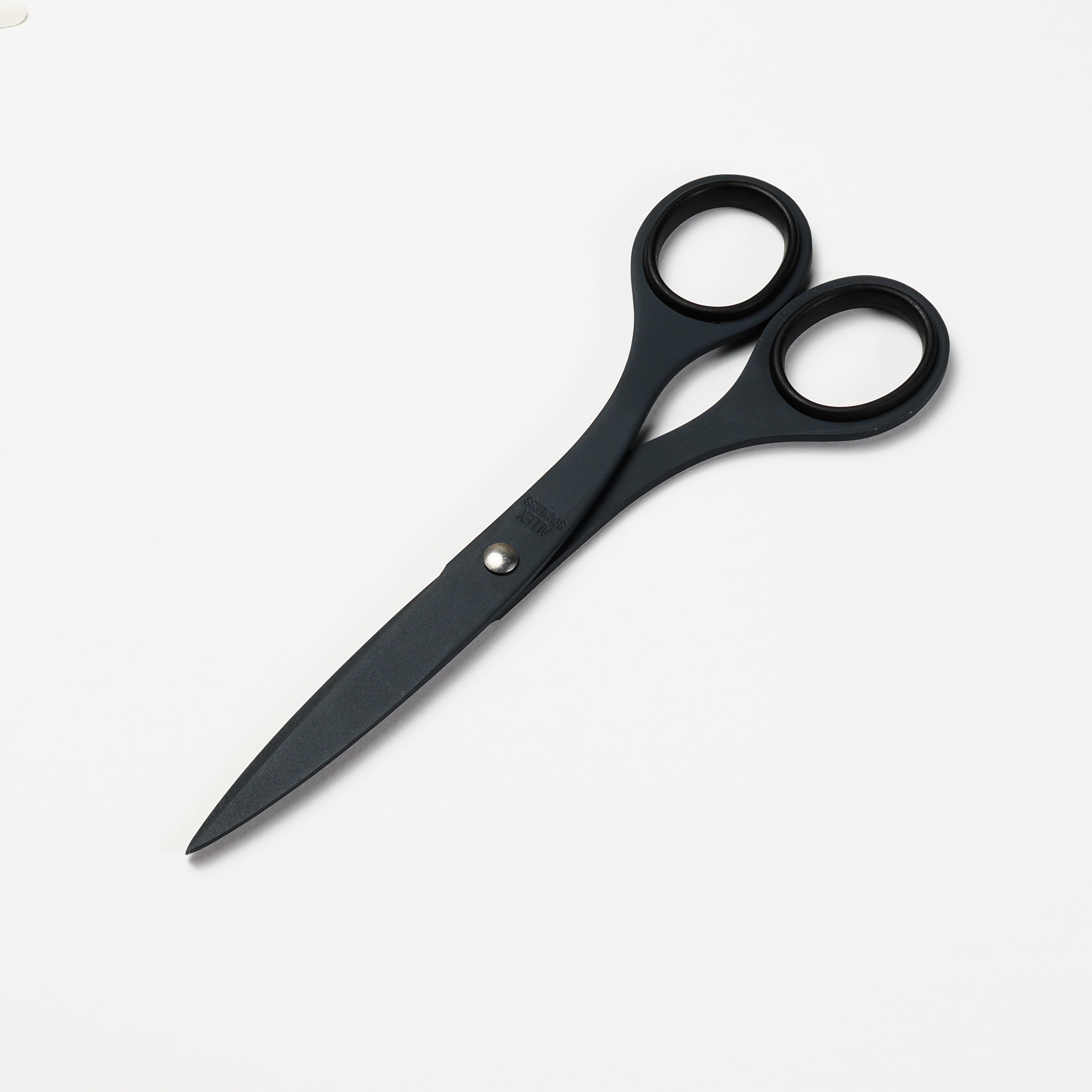 This model is made from rust-resistant stainless steel using 2.5mm thick premium material. The design is elegant, with excellent weight balance. The blades feature a fluorine coating, making it difficult for adhesives like tape to stick. The handles are made of rubber-like plastic, providing durability and a soft, comfortable grip.
