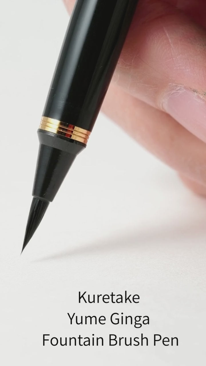 “Yume Ginga” is an authentic fountain brush pen featuring a tip made from natural weasel hair, known for its flexibility and ability to create expressive line variation.