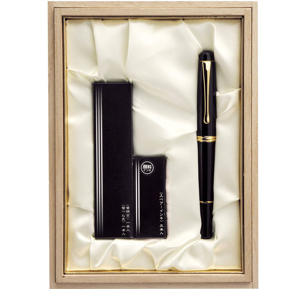 The barrel incorporates materials such as urushi lacquer, natural elements, and Makie decoration, giving the pen the presence of a craft piece while remaining a practical writing tool — also suitable as a gift.