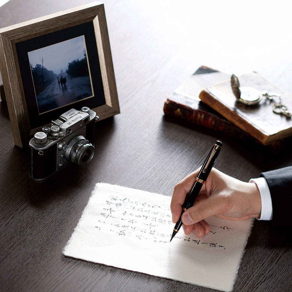 Kuretake is a Japanese manufacturer of calligraphy and writing instruments, founded in 1902 in Nara as a producer of traditional sumi ink. Utilizing its ink-making expertise, the company developed products such as liquid ink, brush pens, and markers. It holds a top-class share of the brush pen market in Japan. Today, centered on the value of handwriting, Kuretake has expanded into the art and craft field as well as overseas markets. Kuretake’s Mannen Mouhitsu fountain brush pen series transforms the expressive qualities of traditional brush writing into an everyday writing instrument.